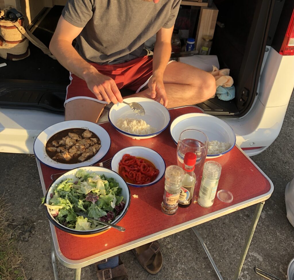 …zweite Hälfte der Strecke und dann heissts auch schon Schlafplätzli in Nähe der Fähre zu suchen. Damit wir für morgen und Zuhause ready sind, wird Finn ein letztes Mal gepüschelet…