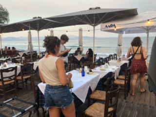 …dann schägt man sich einen Strand weiter in einer Taverne den Bauch voll…
