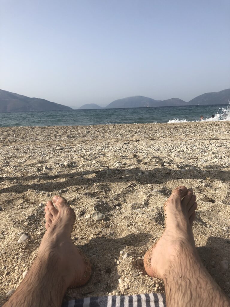Nach einem Murmeli-Langschlaf 4x Brunch und dann ab an den Privat-Strand 20‘ von unserer griechischen Haustüre entfernt…