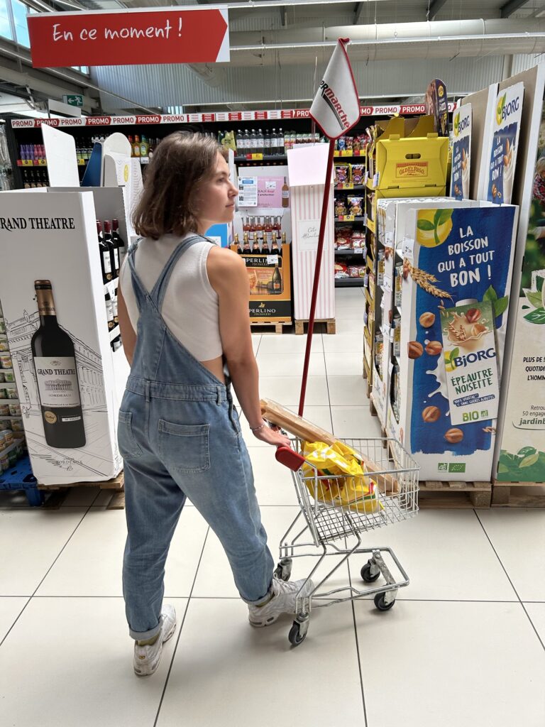 Jetzt gehts so richtig los! Erst mal das Wägeli gekrallt und den Süpermarché geplündert: nun kann kommen was will 🙂